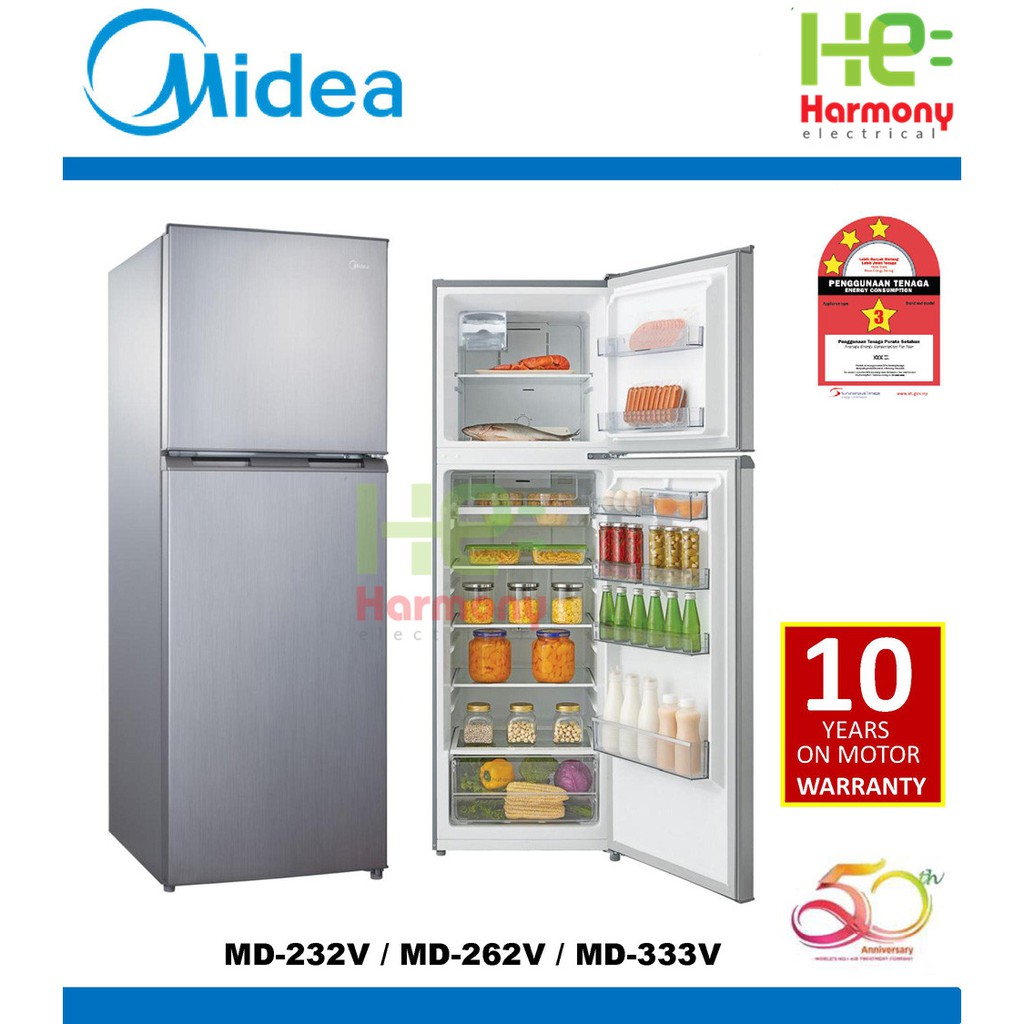 Midea 2 Door Fridge Md 333v 300l With 10 Years Compressor Warranty Refrigerator Peti Sejuk Shopee Malaysia